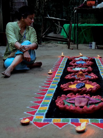 Born in 1968 at Kochi, Radha Gomaty received her Bachelor’s in Fine Arts – Painting from Faculty of Fine Arts, MS University, Baroda, attended the Foundation Programme at NID, Ahmedabad, followed by research experience in Philosophy and then a postgraduate course in History of Art from Viswabharathi University, Santhiniketan. Starting her career as a member of the Indian Radical Sculptors and Painters, Radha, who also writes poetry, works in a range of media, including photography and video, besides painting and sculpture. In a mix of natural and other material, most of her art is layered and conceptual – mythic in nature and classical in approach. The multimedia works in this collection are the outcome of a yearlong research project based on travels down the River Ganga, from its source to the sea, which she undertook with two other artists Shantamani Muddaiah and Koumudi Patil. The resulting work was showcased at the IGNCA in Delhi. The artist has had varied experience in media and teaching. Her poetry has been published in two collections and text and form are seen to coalesce in some of her work. Exhibited in solo and group shows in different Indian cities, her art has won her awards from the Kerala Lalit Kala Academy, besides others. Radha lives and works in Kochi.