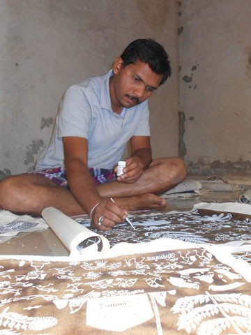 Anil Chaitya Vangad is a traditional painter of adivasi Warli craft. Hailing from Village Ganjad in Maharashtra, he represents the third generation of artists in the family. Since 1991, he has been exhibiting his work across India, including shows at prominent galleries in Pune, Mumbai, Nasik, Thane, Kolhapur, Lucknow, Madras, Udaipur, Delhi, Bangalore, Nagpur, Hyderabad, Bhopal, and Mangalore. He is also noted for his work on commissioned murals.