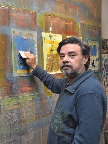 Born in 1958, Harsha Vardhana Swaminathan did his post-graduation in Biological Sciences from Birla Institute of Technology and Science, Pilani followed by a diploma in Business Management, which earned him a job in the corporate world. The self-taught, compulsive artist though, soon left a lucrative career to pursue his passion for art, which seemed natural, given his upbringing amidst art and artists as the son of the late master painter Jagdish Swaminathan. Harsha, for whom a play of colour and the palette are most significant, paints on both paper and canvas, in a clear abstract oeuvre. Textured geometrical figures and inverted triangles are common in most of his work, which suggest an influence of tribal art and symbols of Ying and Yang and add a distinct appeal to his art. The artist is a recipient of the prestigious Raza Award and has held several solo and group shows at Delhi, Chennai, Mumbai, Singapore, Hong Kong and Brussels, amongst others. He has also participated in significant international events such as the Bharat Bhavan Biennial of Contemporary Indian Art at Bhopal, First Biennial of Contemporary Art in Romania, Post Modern Indian Art USA, and several International artists’ camps. The artist lives in Delhi and works from his studio at home.